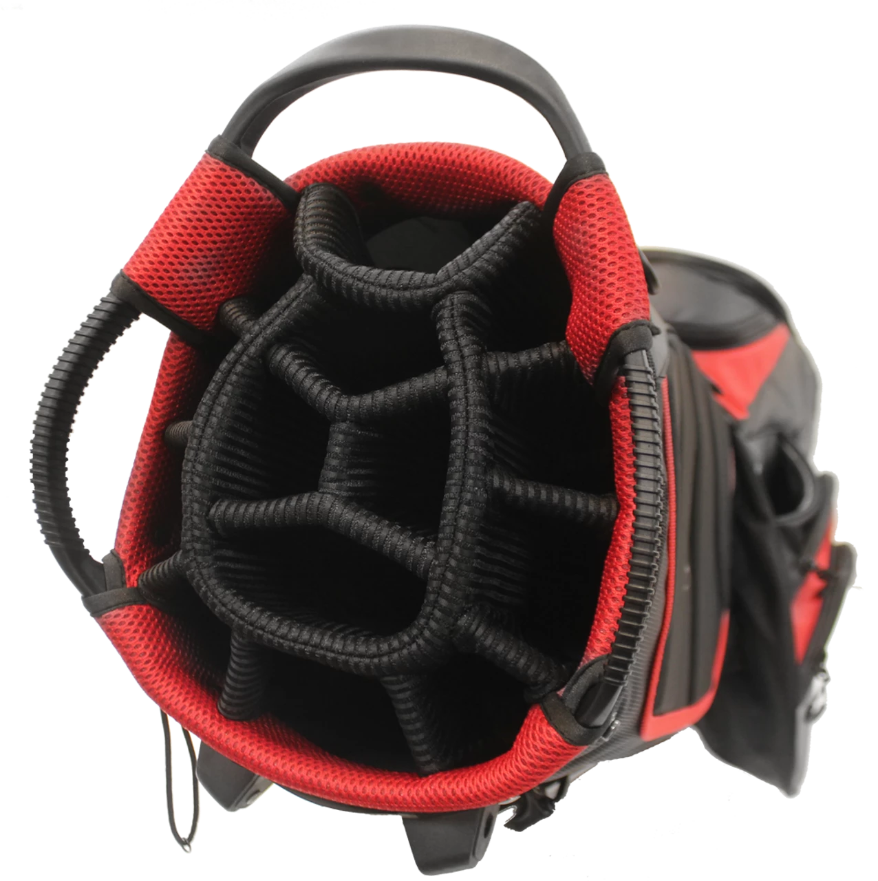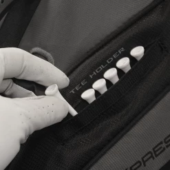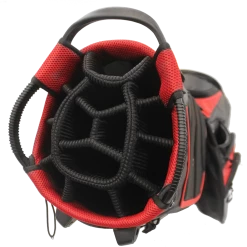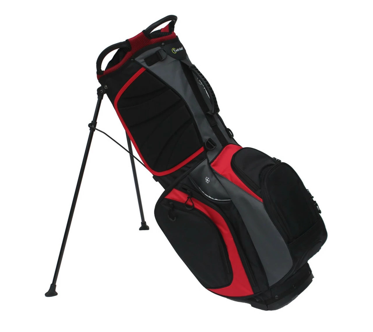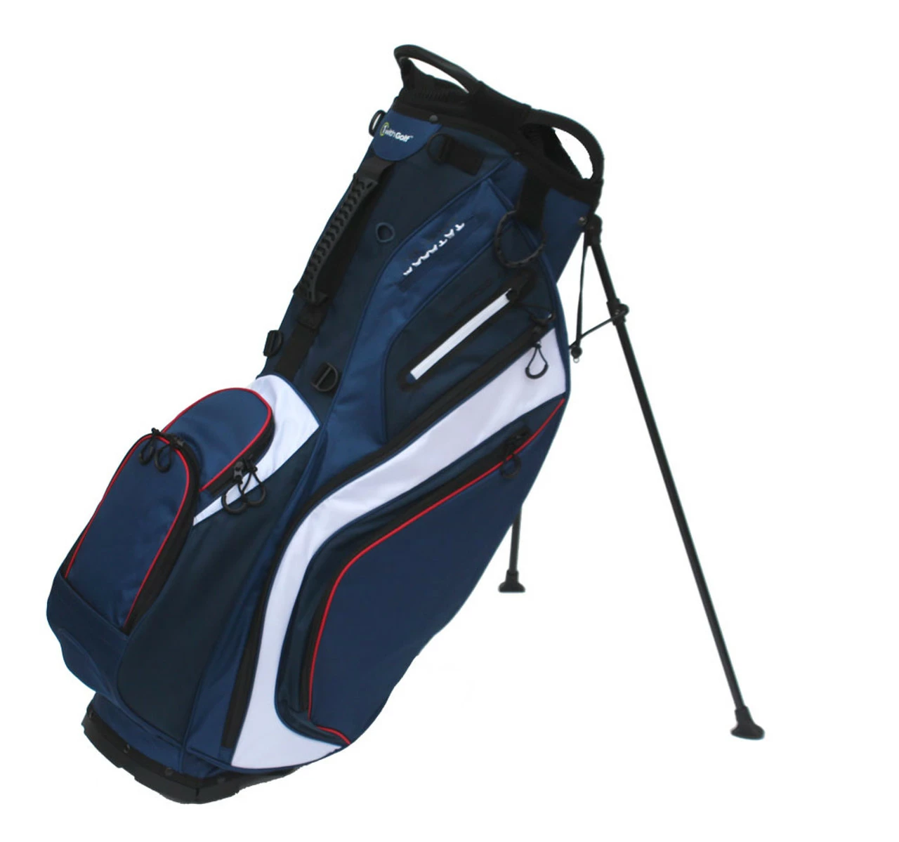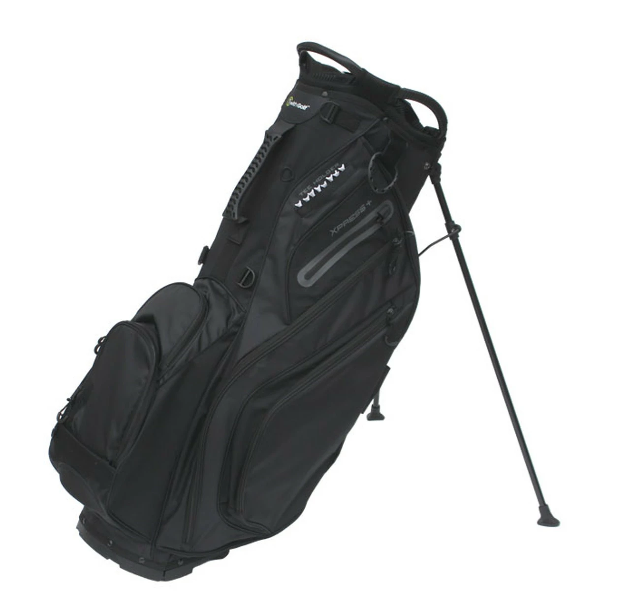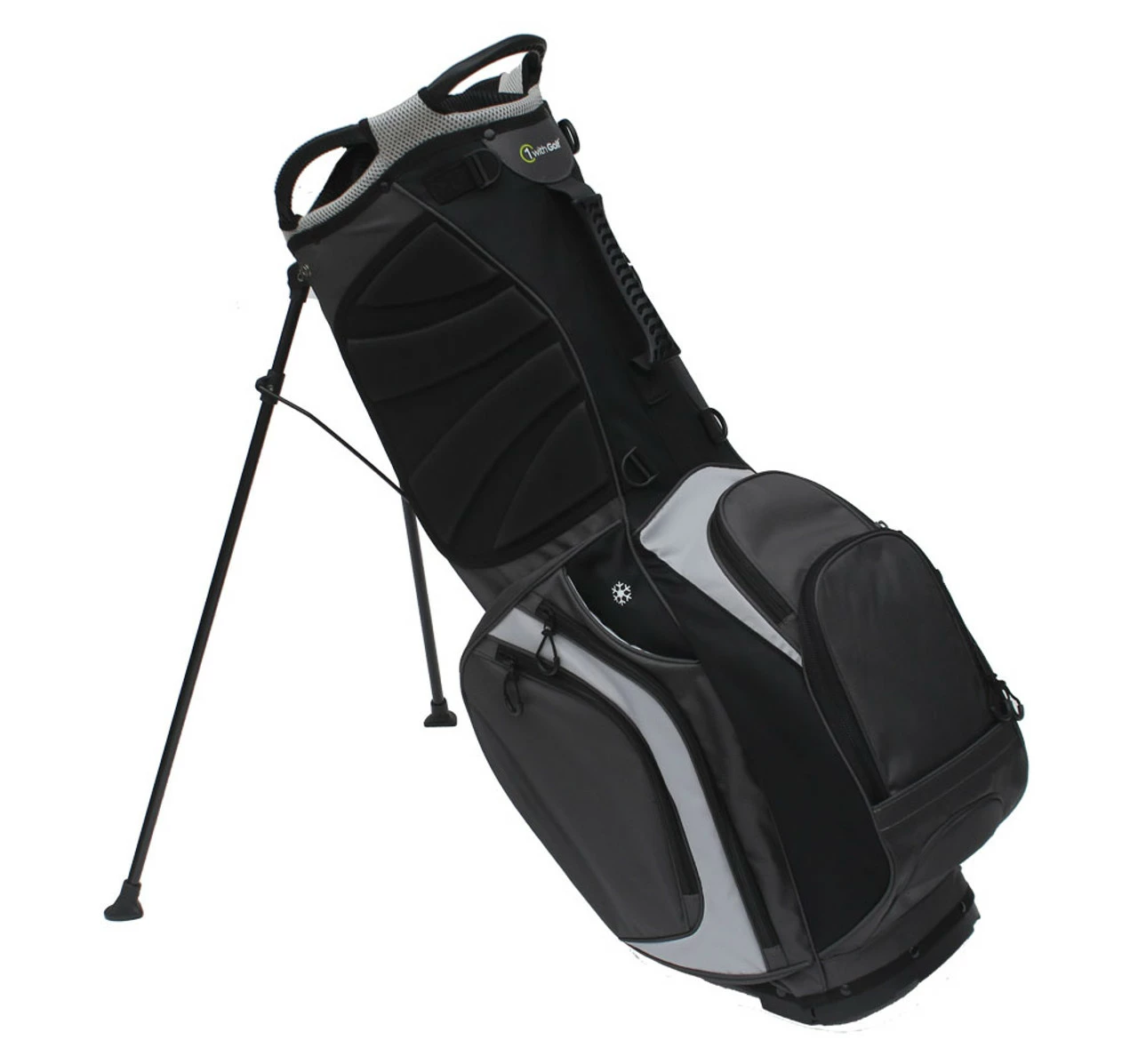 1withGolf’s Xpress plus 14-way stand bag is the perfect combination of a cart bag organizer with the portability of a stand bag. It has 14- way full-length dividers, lightweight and durable with a sharp look. The bag is built with a cart-friendly base and a strong top and stand mechanism system. An EVA molded hip pad offers comfort and a stylish look. The newly designed hidden tee-holders hold up to 9 tees to have you all covered and you never need to bend down to look for your tees again. A dual shoulder strap and a rain hood are included. It is only 5.5lbs.