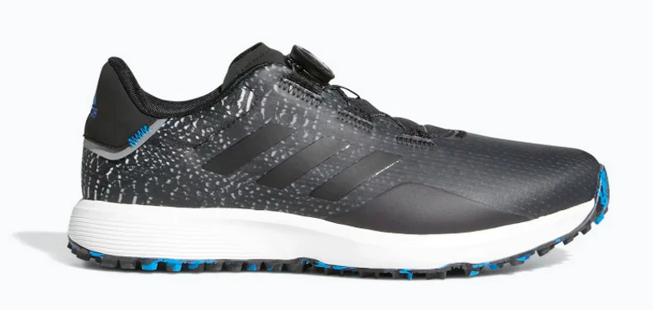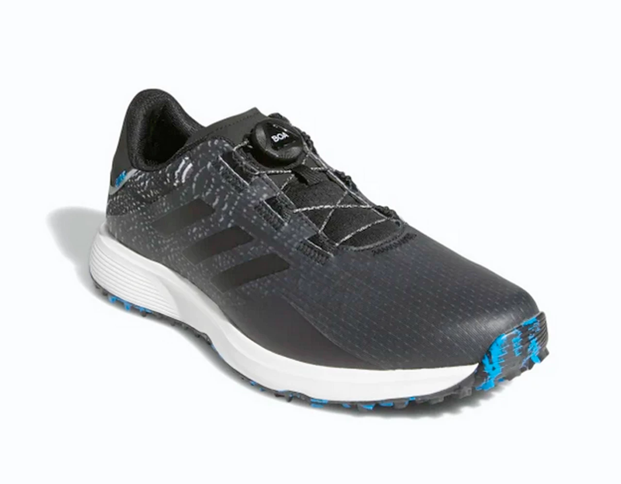 Bring confidence to your game in these adidas golf shoes designed for versatile performance. The Bounce midsole cushioning offers comfort and flexibility through 18 holes and beyond. The V-Traxion outsole delivers solid grip for enhanced stability on variable terrain. The waterproof upper keeps your feet dry on damp fairways, and the BOA® Fit System lets you dial in a precise fit. The spikeless design ensures an easy transition from course to clubhouse. Made with a series of recycled materials, this upper features at least 50% recycled content. This product represents just one of our solutions to help end plastic waste.