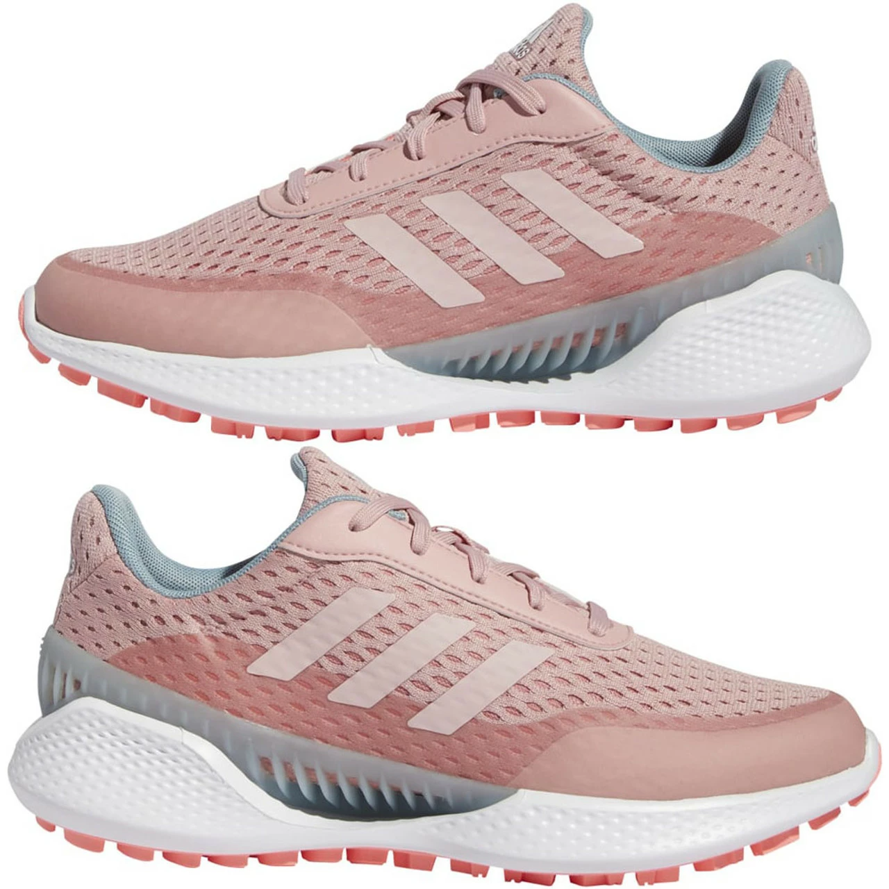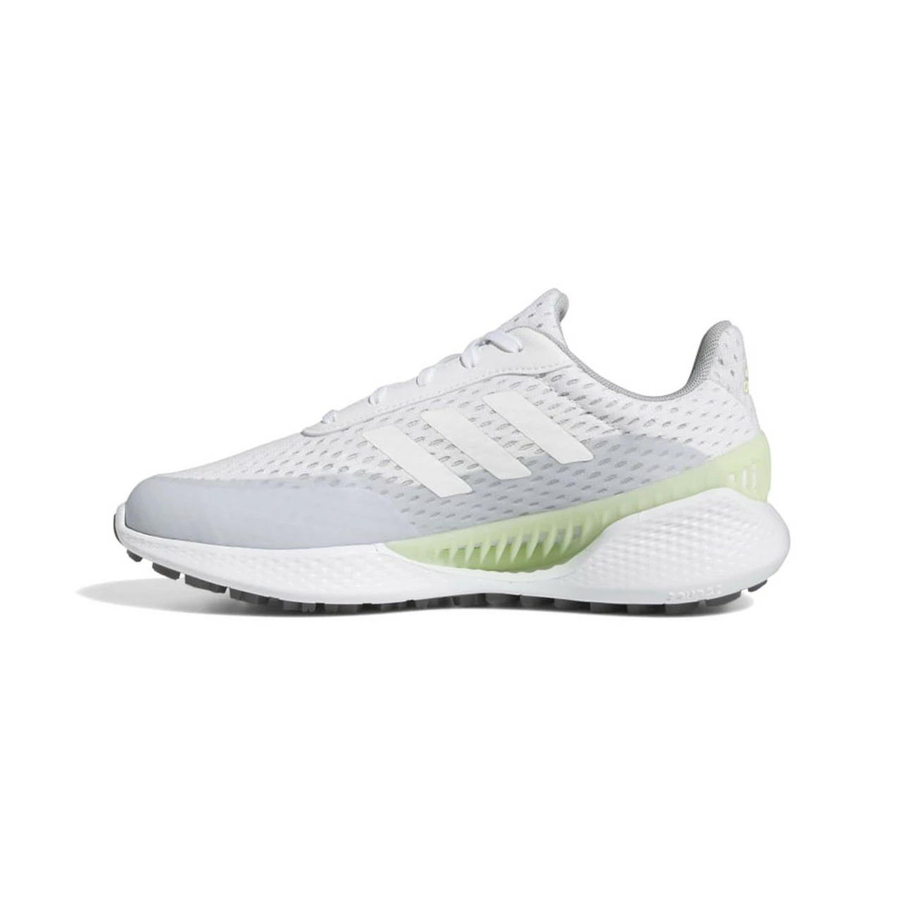 Stay cool during the heat of the day in these women’s-specific adidas spikeless golf shoes. The mesh upper and ventilated chassis pull warm air out and keep your feet aerated. The Bounce midsole provides cushioning for comfort and flexibility. This shoe is made with high-performance recycled materials and features an upper made with 50% recycled content.