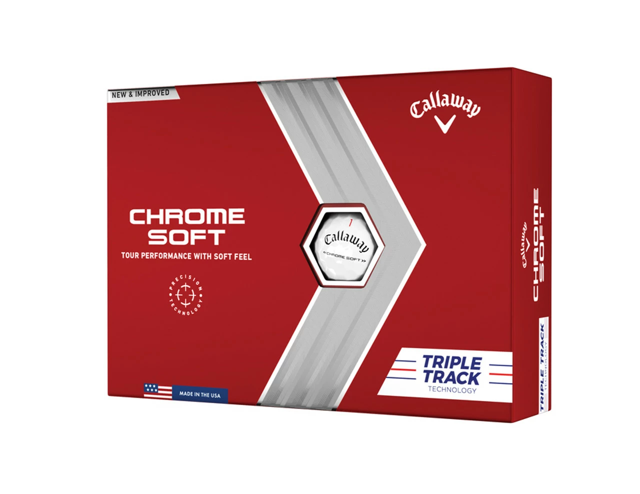 Now with Precision Technology, the Chrome Soft Golf Ball is longer through the bag while providing the signature soft feel that golfers love, plus major-winning Triple Track Technology.