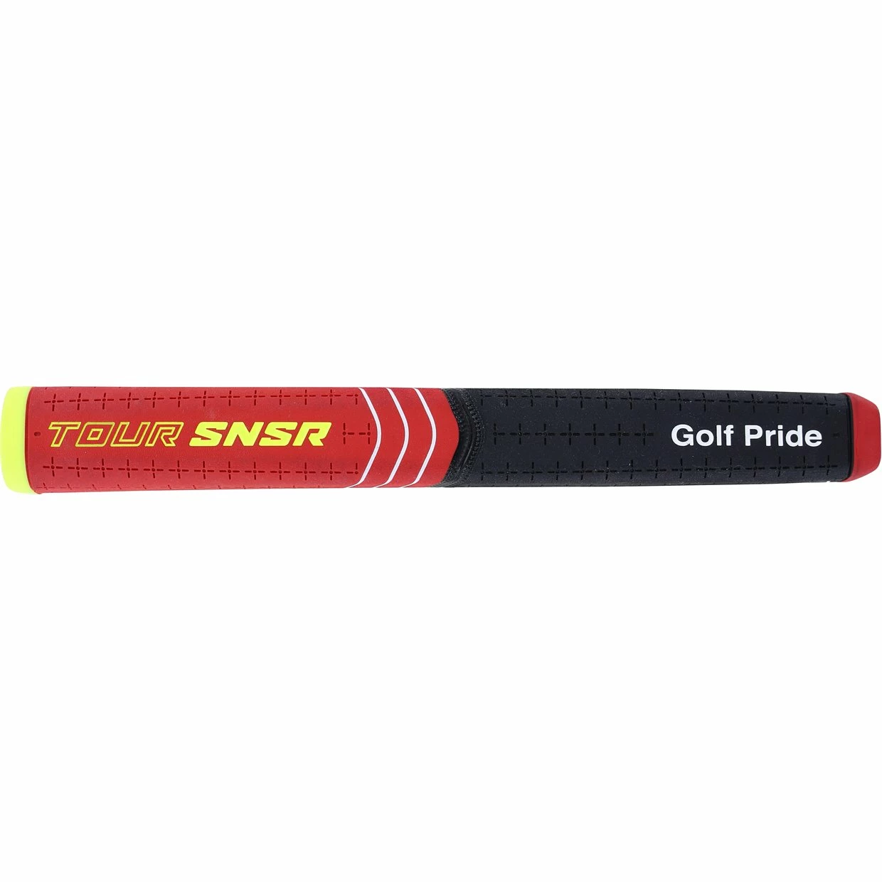 The Golf Pride Tour SNSR Contour putter grip has a pistol contour shape. The exclusive SNSR compound and textured design delivers Tour preferred traction, a heightened feel and moisture control. The wide, paddle front is designed for proper thumb placement and face alignment, while the pistol contour provides a larger geometry in the upper hand that helps lock-in your grip for repeatable motion and a solid contact. The Contour putter grip promotes improved distance control and lighter grip pressure for more fluid strokes.