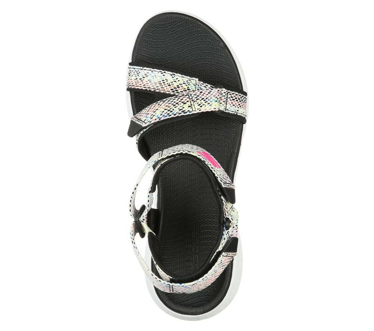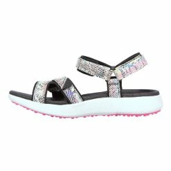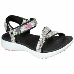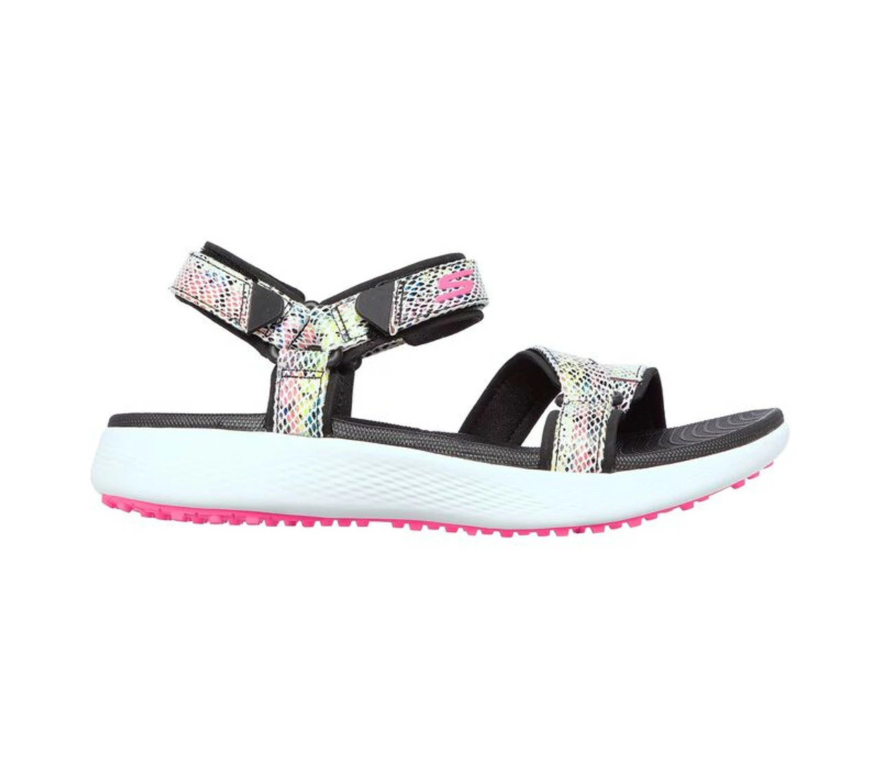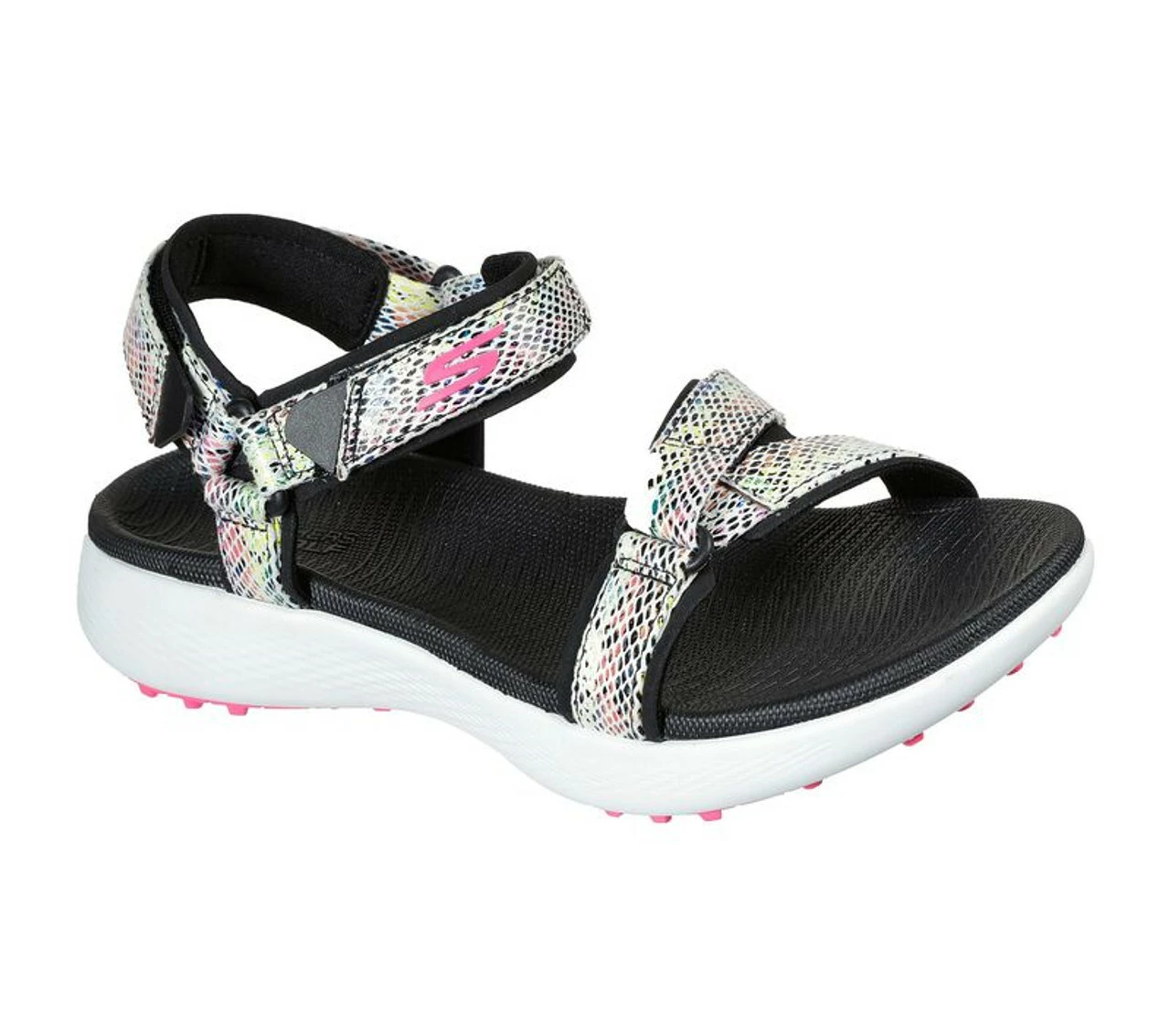 Warm weather play gets stylish and comfortable with the Skechers GO GOLF 600 ` Charms sandal. This casual sandal features snake-textured straps with a Goga Max cushioned footbed and a golf-style spikeless TPU outsole for added stability.