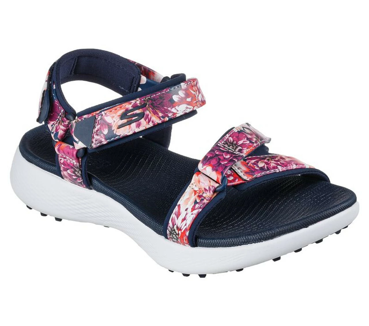 Golf in paradise with style and comfort wearing Skechers GO GOLF® Sandal – Tropics. This casual sandal features a colorful floral print straps with a Goga Max® cushioned footbed and a golf-style spikeless TPU outsole for added stability.