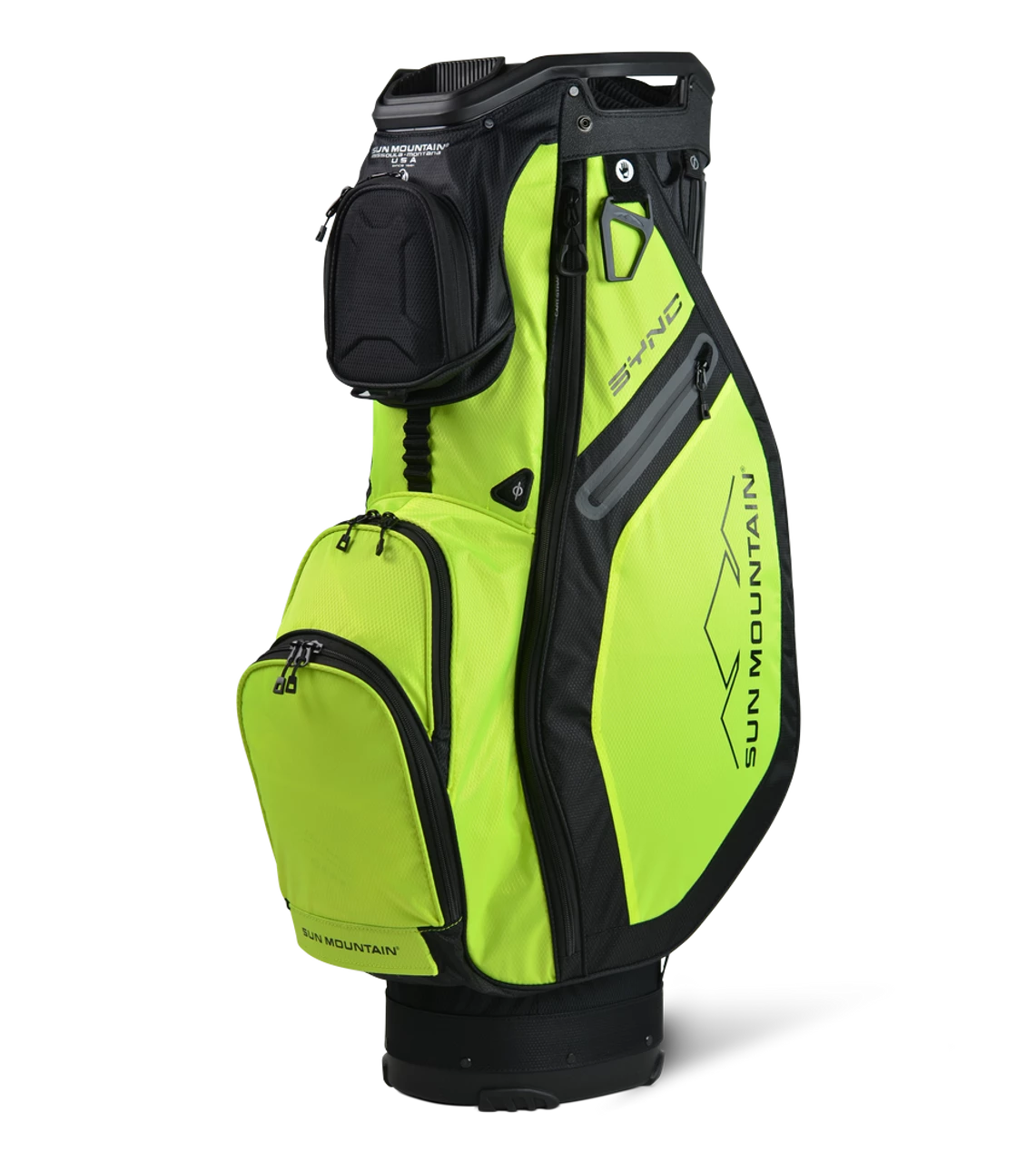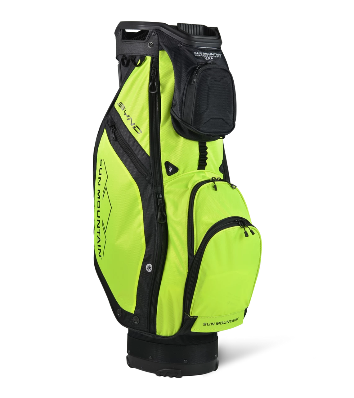 The Sync is designed specifically for use on push carts. We started with a top and bottom built to nest in the upper and lower bag wraps of Sun Mountain carts. We made all the pockets forward-facing so they are accessible when the bag is on a cart and added a cart strap pass-through so the bag can be strapped to the cart without hindering pocket usage.