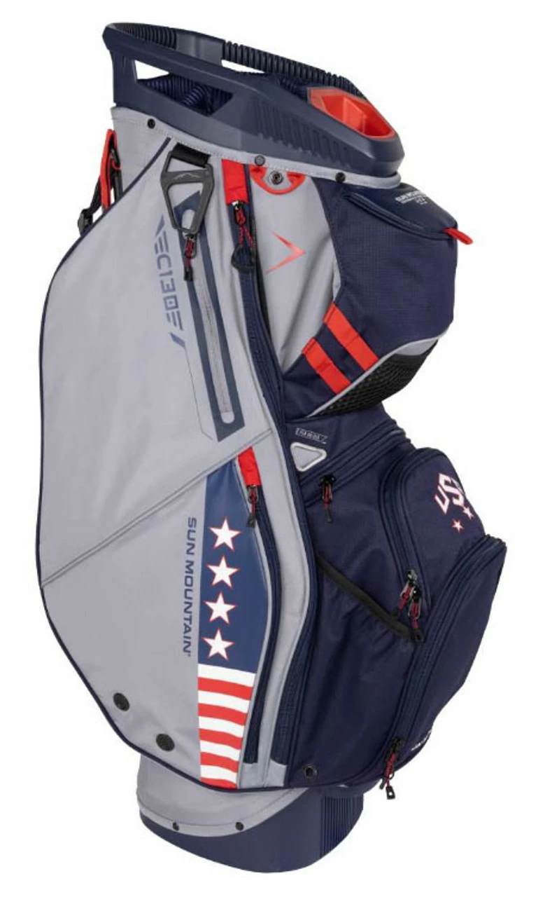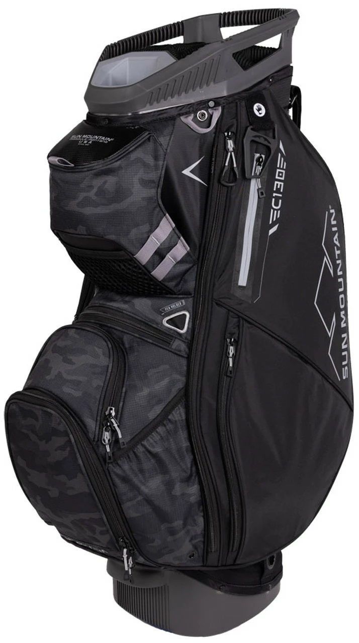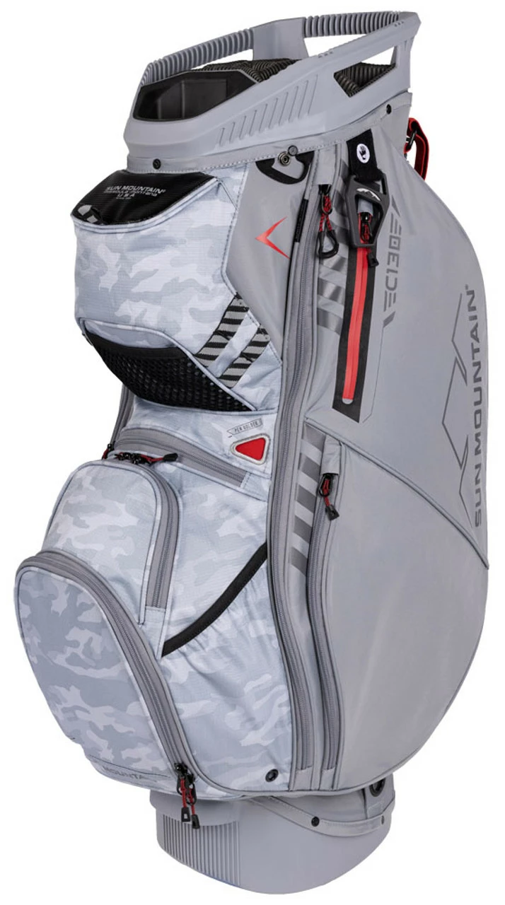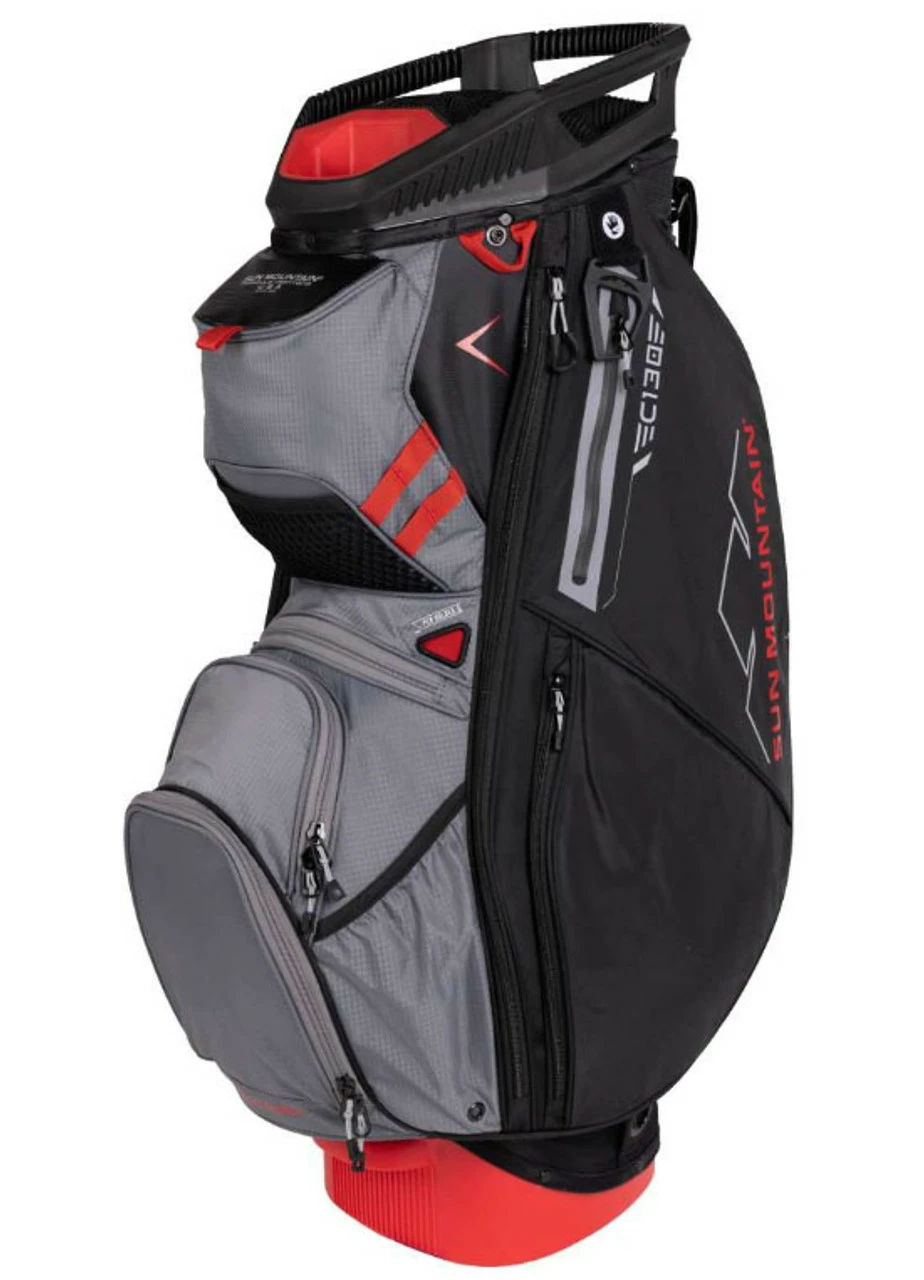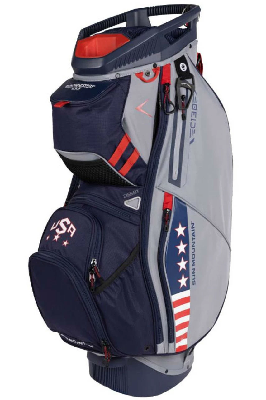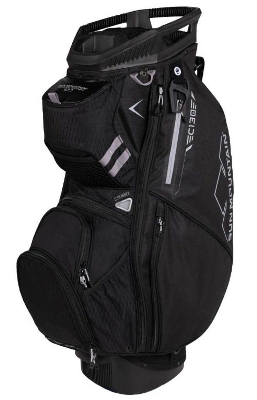 Updated for 2023, the C-130, Sun Mountain’s best-selling cart bag, was created to work optimally on a cart. All features are designed with cart use in mind, starting with the reverse orientation top with three utility handles, cart bumpers, the Smart Strap System and a convenient, roomy, velour-lined rangefinder pocket with a magnetic-closure. In addition, all pockets are forward-facing and accessible when the bag is on a cart. For 2023, Sun Mountain added an additional velour-lined pocket and streamlined the top.