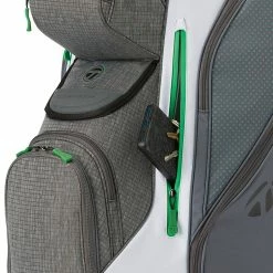 The Supreme Cart is the ultimate in cart bag design – delivering everything the golfer needs, and more, in a premium package. Designers strategically placed seven front facing pockets on the Supreme Cart to ensure easy storage and access throughout the round. A magnetic clasp on that dual closure accessories pocket lets you quickly access the most frequently used items such as tees, golf balls or ball markers. A large cooler pocket with a built-in drainage system allows golfers to store food and beverages for the length of the round.